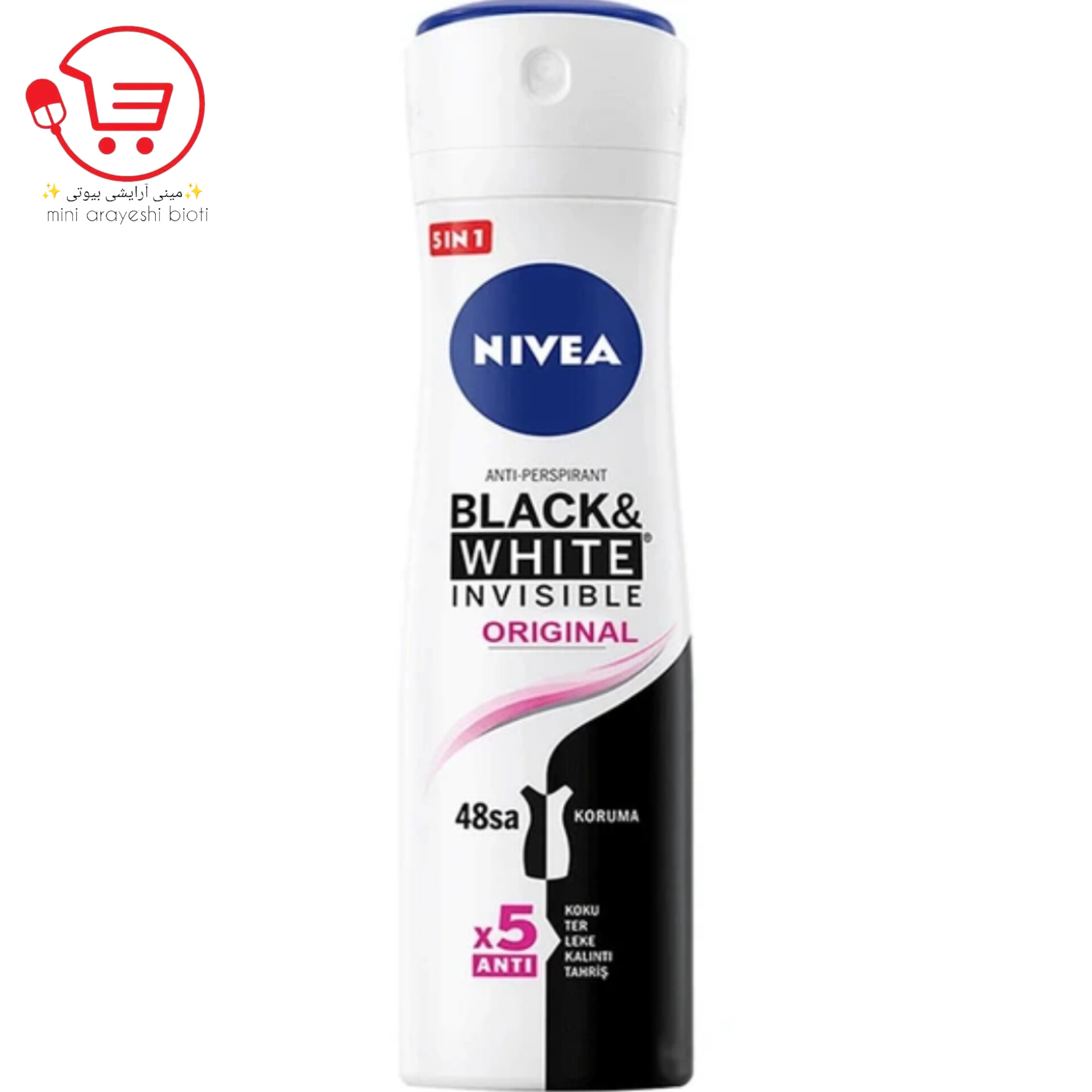 اسپری ضد تعریق و خوشبوکننده بدن نیوآ حجم 150میل آلمانی رایحه ی بلک ان وایت اینویزیبل زنانه