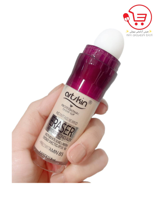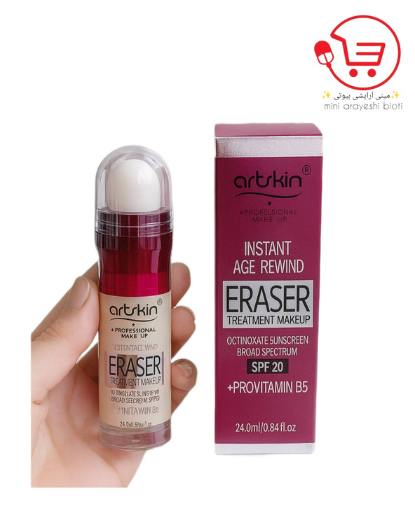 کانسیلر و کرمپودر Eraser Treatment Makeup برند ArtSkin، یک محصول حرفهای با کیفیت بالا برای پوشاندن نواقص پوستی، تیرگی دور چشم، لک، جوش و خطوط ریز صورت است. این محصول با الهام از نسخه معروف «Instant Age Rewind»، دارای طراحی خاص با سری اسفنجی بوده که استفاده از آن را بسیار راحت و دقیق میکند.