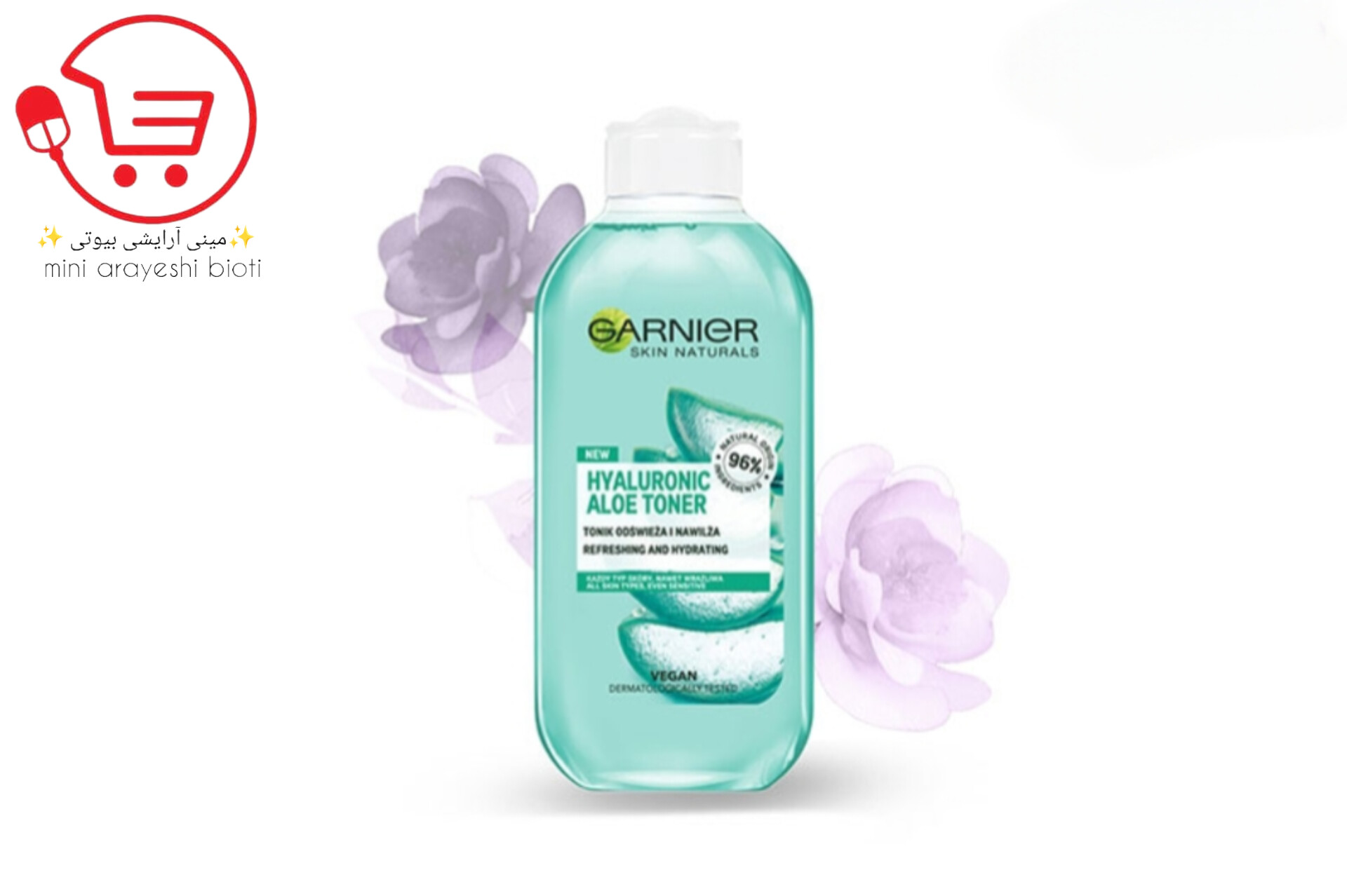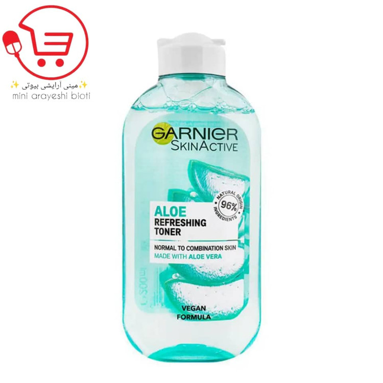 تونر پاک کننده صورت گارنیر مدل Aloe مخصوص پوست نرمال و مختلط گارنیه حاوی 96 درصد مواد تشکیل دهنده ارگانیک و گیاهی بوده که مخصوص پوست های نرمال و مختلط طراحی شده است. پایه اصلی این تونر عصاره خالص آلوئه ورا بوده که به شدت پوست را آبرسانی و تغذیه میکند و از هرگونه خشکی و کشیدگی پوست جلوگیری میکند. قدرت پاک کنندگی این محصول بسیار بالا بوده و تمام آلودگیهای را از سطح و منافذ پوست پاکسازی میکند و همچنین PH پوست را به درستی تنظیم میکند. این تونر فاقد هرگونه مواد شیمیایی مضر از جمله پارابن، سیلیکون و رنگ مصنوعی میباشد.
