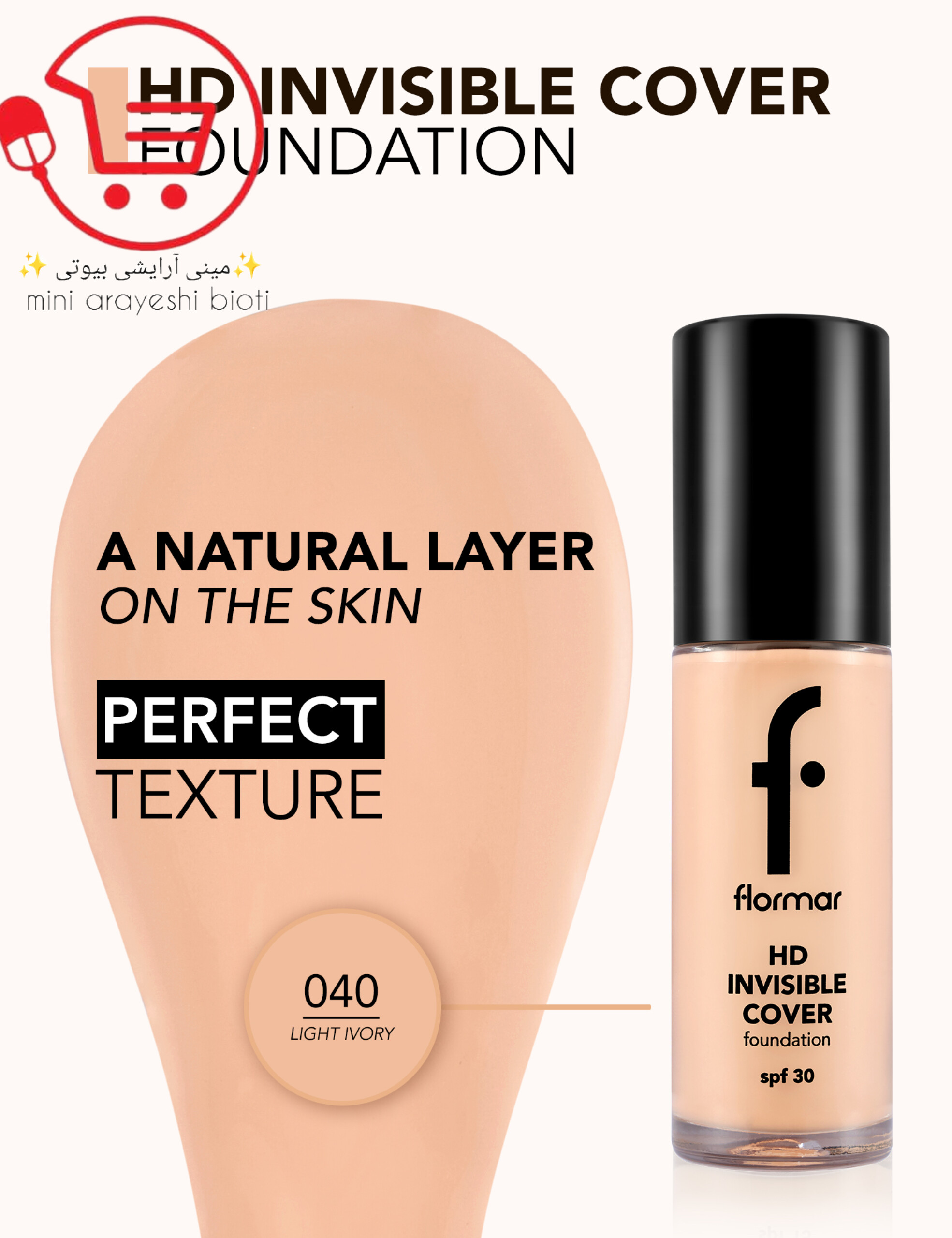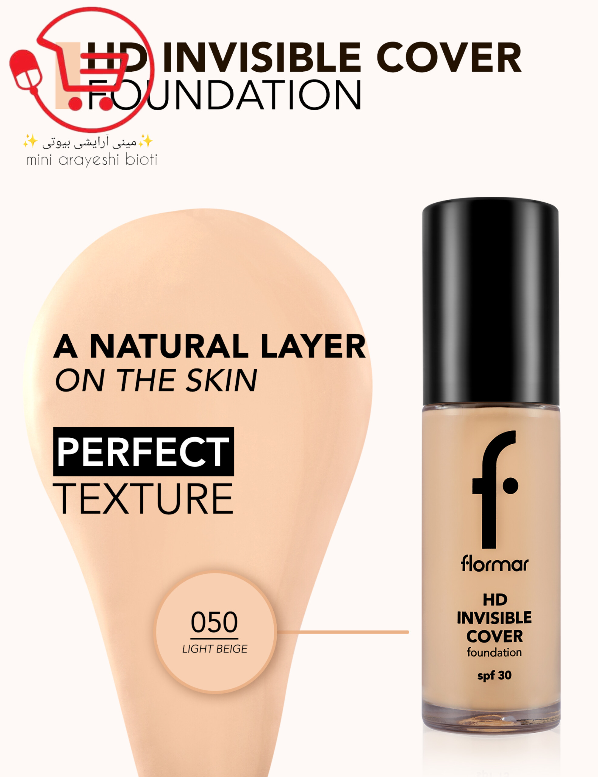 کرم پودر HD Invisible Cover فلورمار با SPF 30 و حجم 30 میلیلیتر، یک کرم پودر با پوششدهی