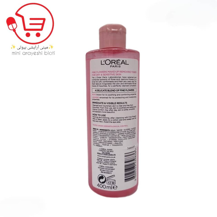 تونر پاک کننده و تسکین دهنده لورال فاین فلاورز LOreal Fine Flowers محصولی بسیار عالی جهت استفاده پس از پاک کردن روزانه صورت می باشد. تونر فاین فلاورز لورال حاوی عصاره گل رز و گل یاس بوده و پاک کننده بقایای آلودگی های روی پوست، تسکین دهنده، مرطوب کننده و محافظت کننده پوست می باشد.
