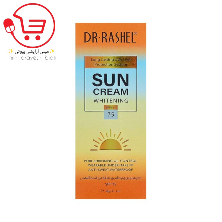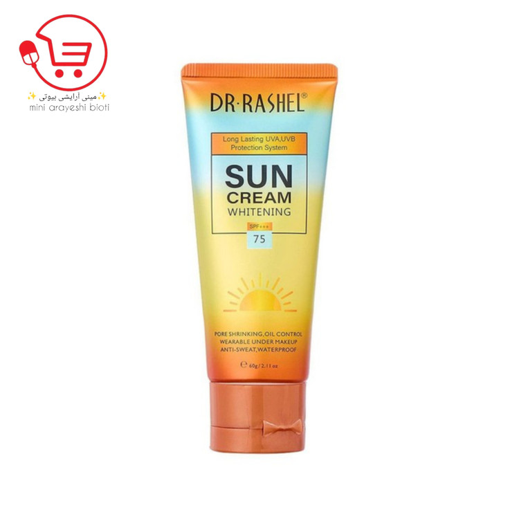 مشخصات،قیمت و خرید کرم ضد آفتاب دکتر راشل Dr Rashel مدل سفید کننده Whitening رنگ نارنجی حجم 60 میل SPF 75 بدون رنگ
