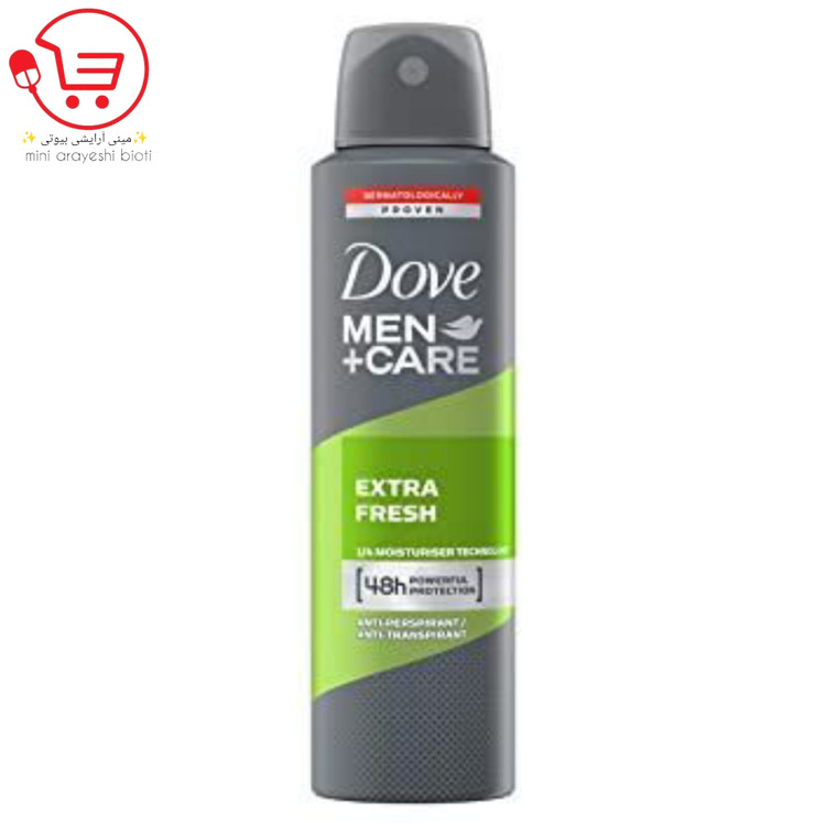 اسپری ضد تعریق آقایان داو مدل اکسترا فرش Dove Men جهت خشک ماندن بیشتر و حس تازگی دائمی در حین شرایط مختلف زندگی روزمره طراحی شده است. این اسپری از خیسی و بوی نامتبوع عرق برای 48 ساعت محافظت می کند. اسپری ضدتعریق مردانه داو حاوی 25 درصد مرطوب کننده جهت جلوگیری از تحریک و ایجاد حساسیت پوست بوده و فاقد الکل می باشد.